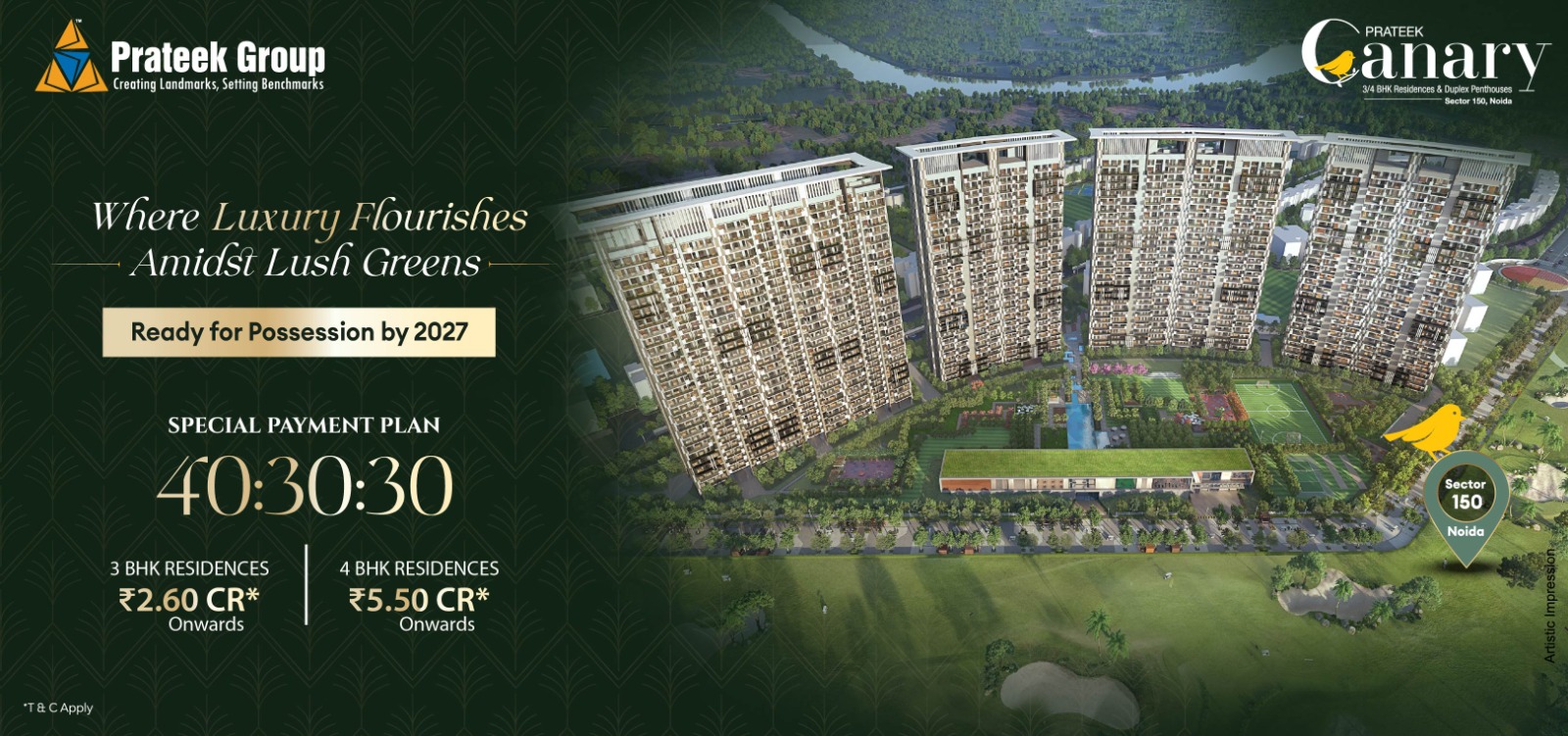 - Spacious 3/4BHK residencies & Duplex Penthouses.