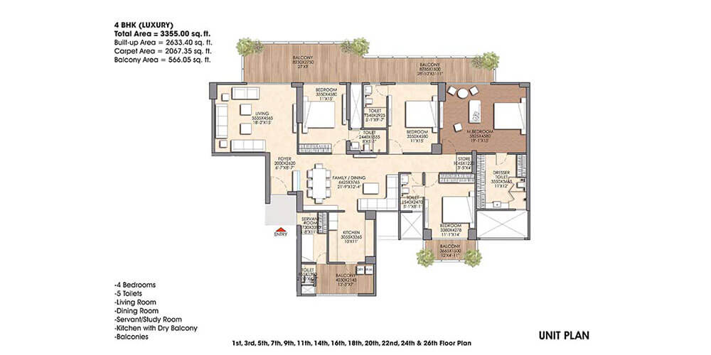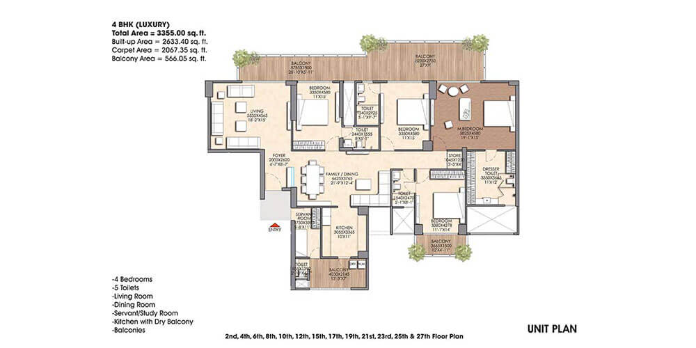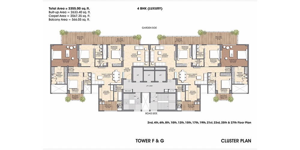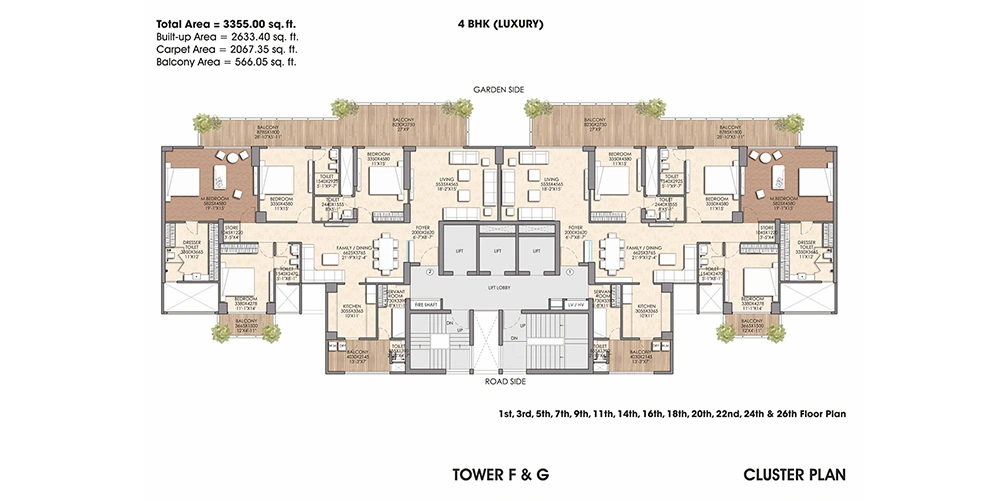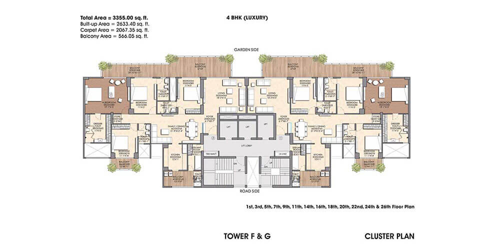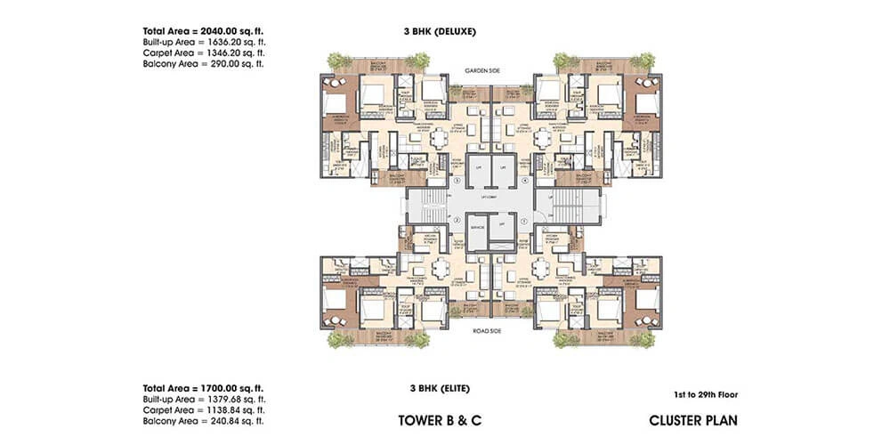 - Spacious 3/4BHK residencies & Duplex Penthouses.